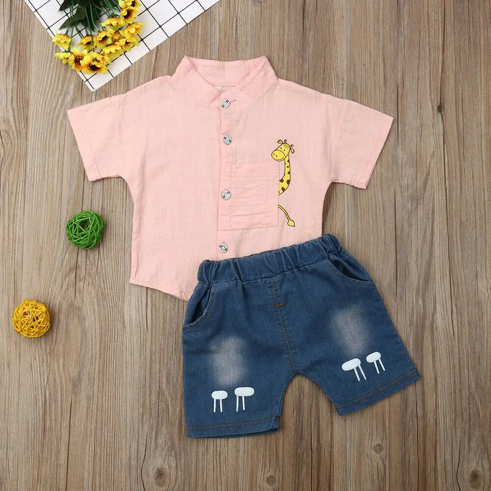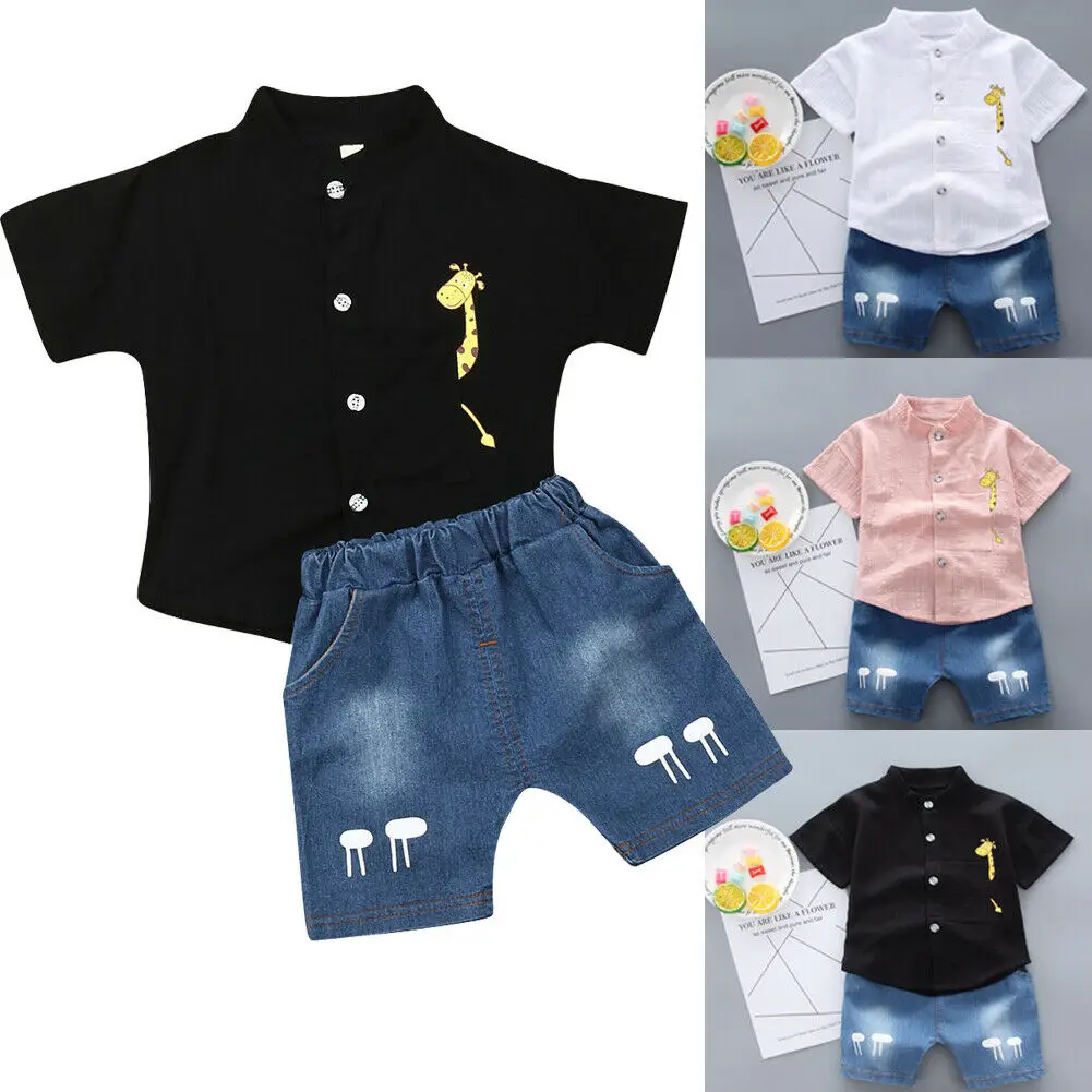 Limited Offer of 1-5T 2PCS Toddler Kids Baby Boys Short Sleeve Tops Gentleman Shirt Shorts Jean Outfits Summer Cloth