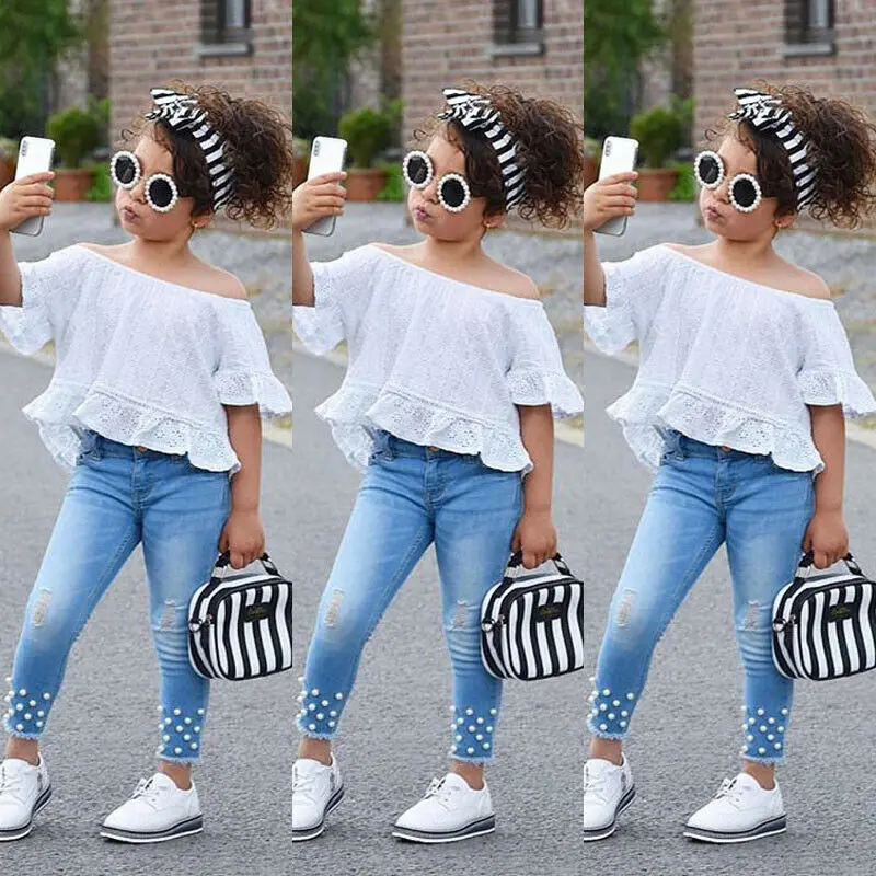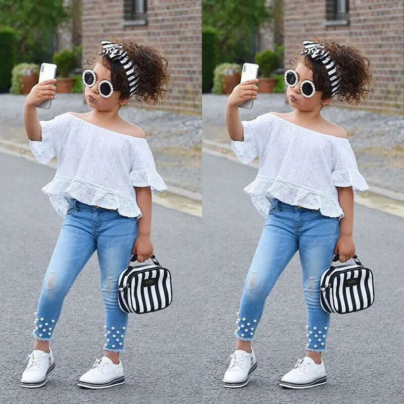 Buy 1-6Y Toddler Kids Baby Girls Clothes Sets White Tops T-shirt Denim Long Pants Jeans Outfits Set Right Here and Right Now Just for USD US $5.66, Price will be rise up at any time without notification and I cant guaranted that the stock is still available tommorow or next hour. So Please Save It Now!