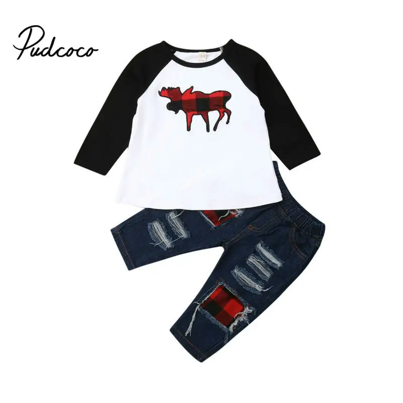 Special Chance of 2PCS Toddler Baby Boys Girls Christmas Clothes Long Sleeve Swatshirt T-shirt Tops Denim Pants Jeans