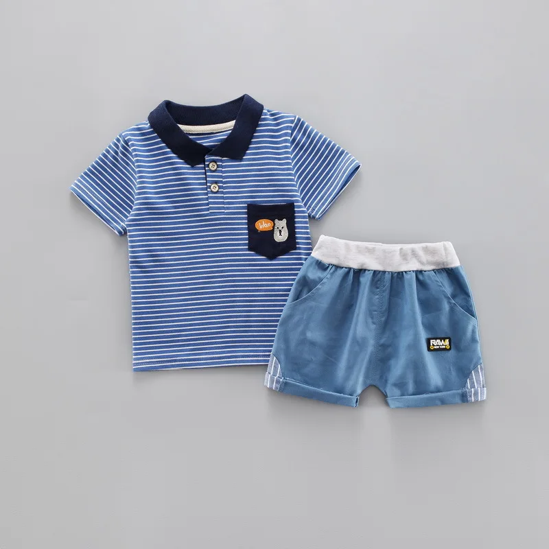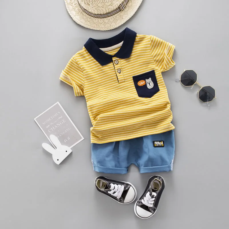 Buy Boys Clothes Strip Summer Clothing Set Short Sleeve Turn Down Collar T Shirt + Jeans Suit Children Right Here and Right Now Just for USD US $3.63, Price will be rise up at any time without notification and I cant guaranted that the stock is still available tommorow or next hour. So Please Save It Now!