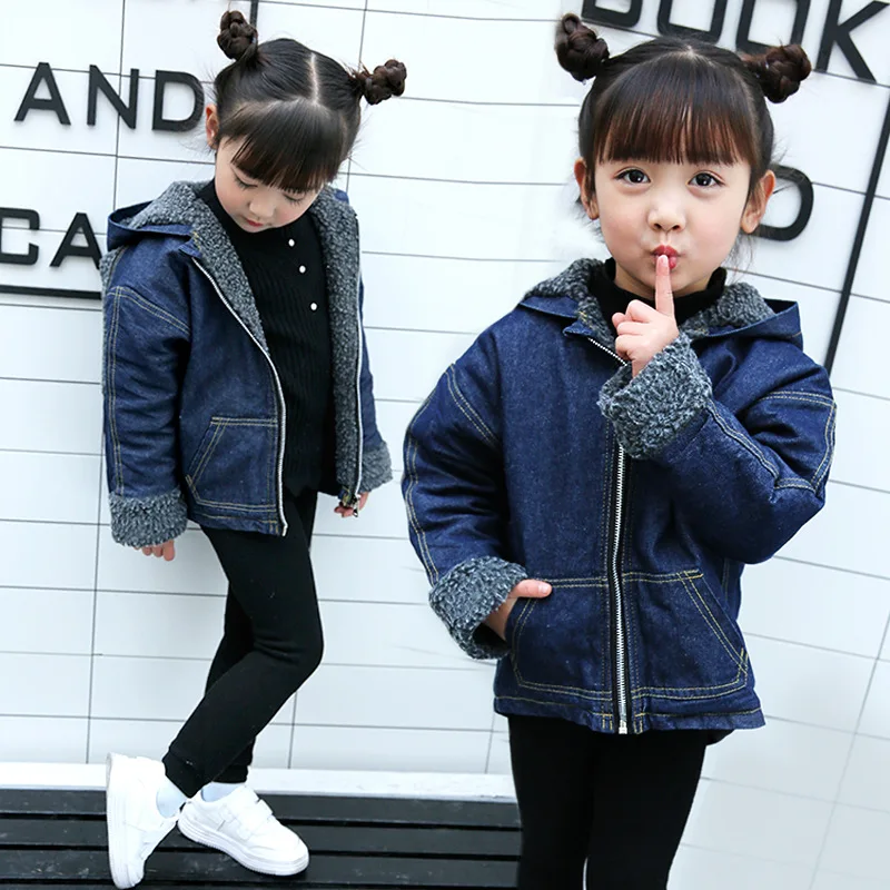 Special Chance of Chidlren's Winter Coat Girls Jean Jacket Baby Girl Clothes Lamb Wool Warm Denim Outerwear Children