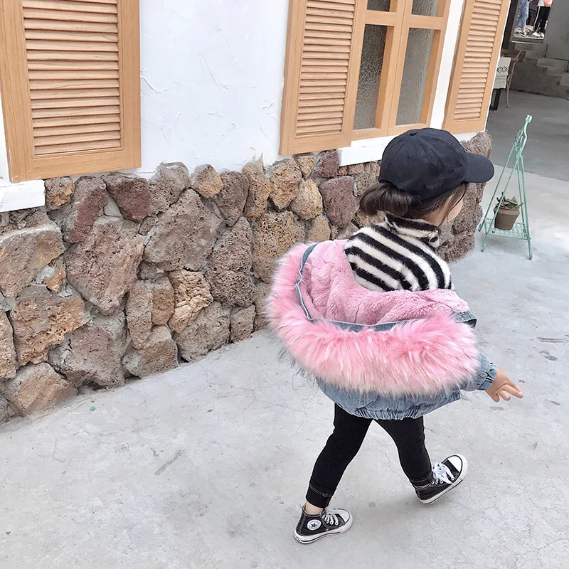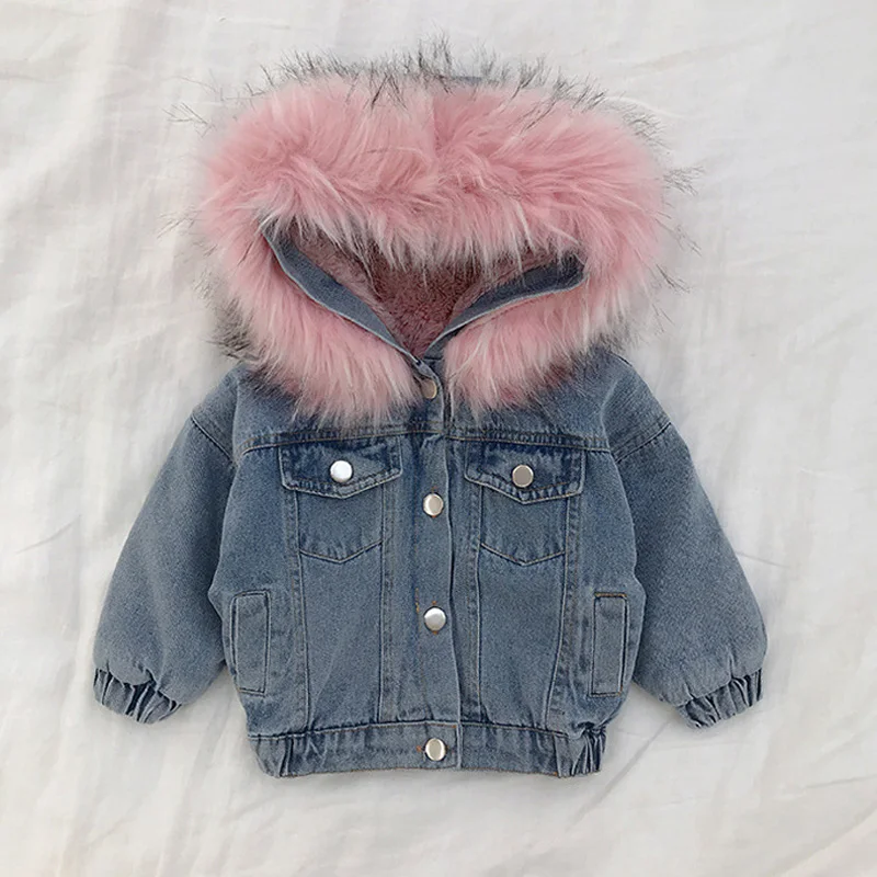 Best Chance of DIMUSI Kids Denim Jackets Winter Girls Baby Faux Fur Collar Hooded Coats Fashion Children Windbreak