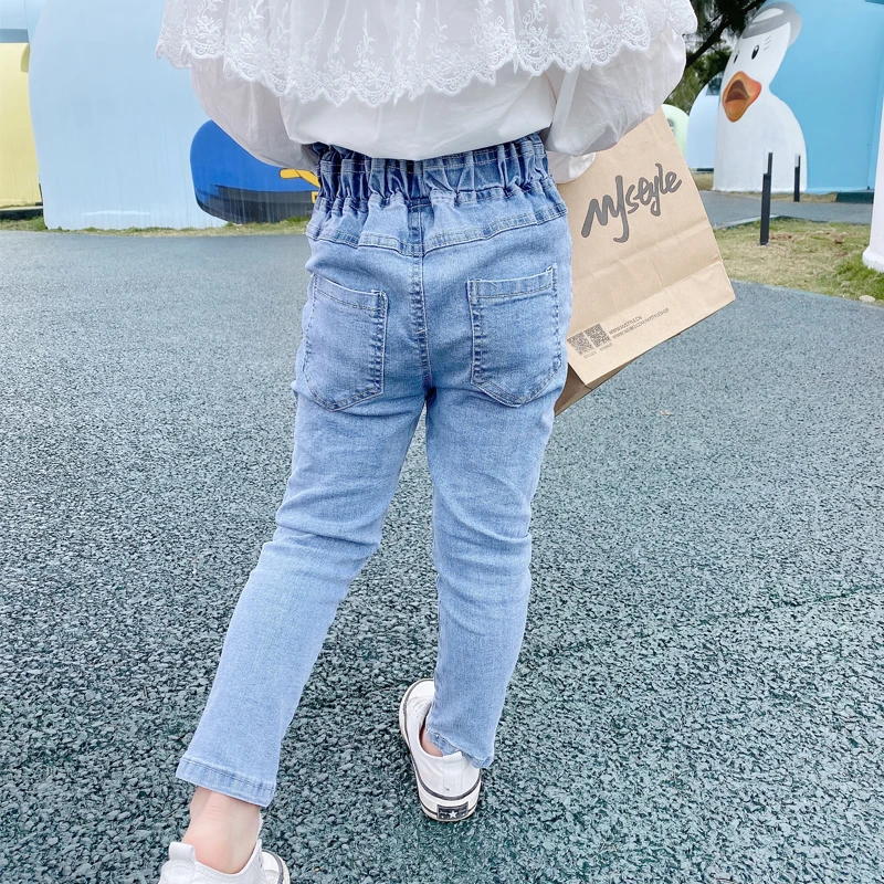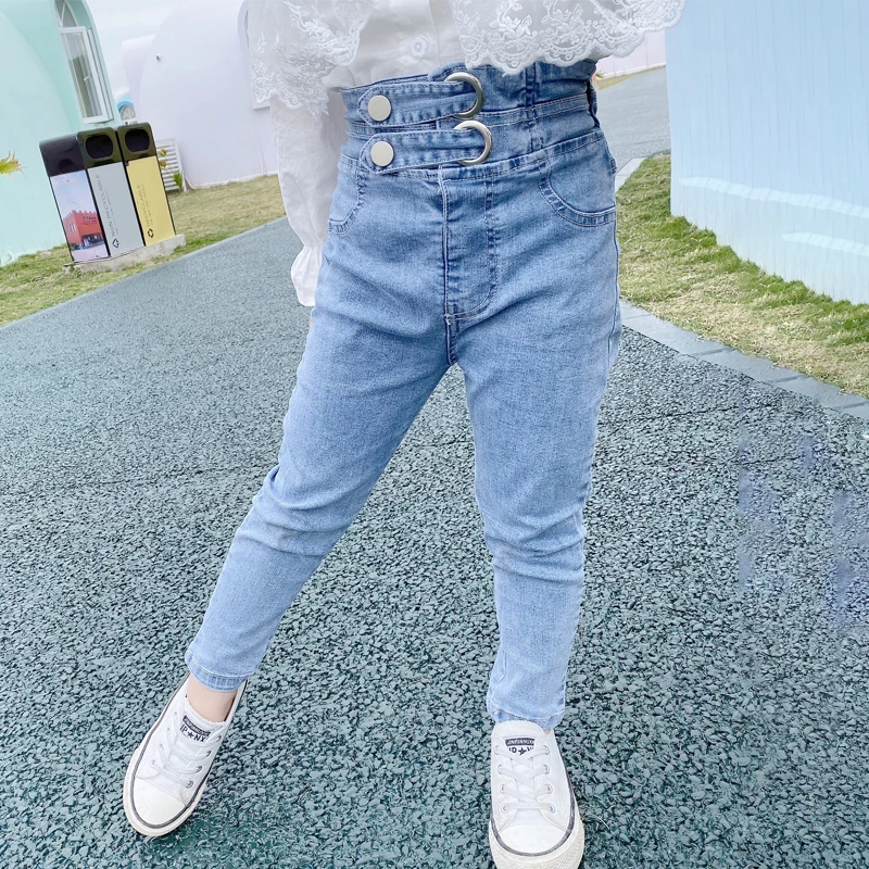 0 Response to " Spring girls jeans baby trousers kids denim pants children bottoms streetwear circle ring button hi"